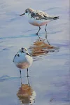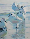 Sold - Sanderlings Feeding in a Pool - Original Acrylic on Canvas - 20 x 24 - Sold at The Barn Gallery, Ogunquit, Maine