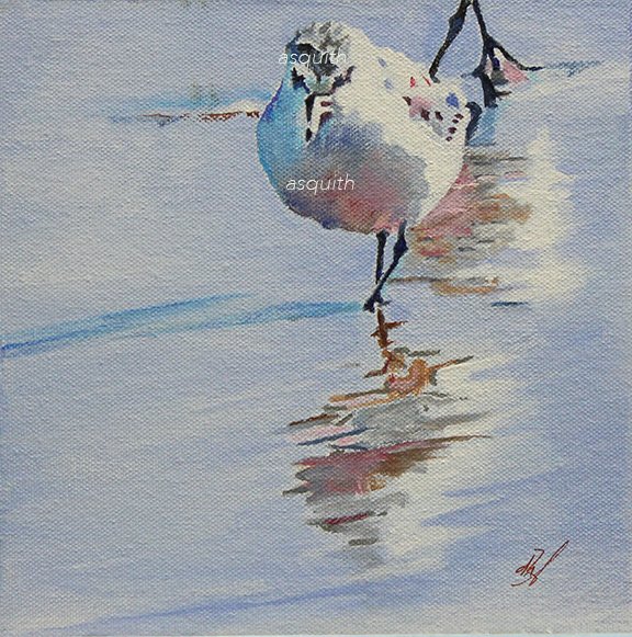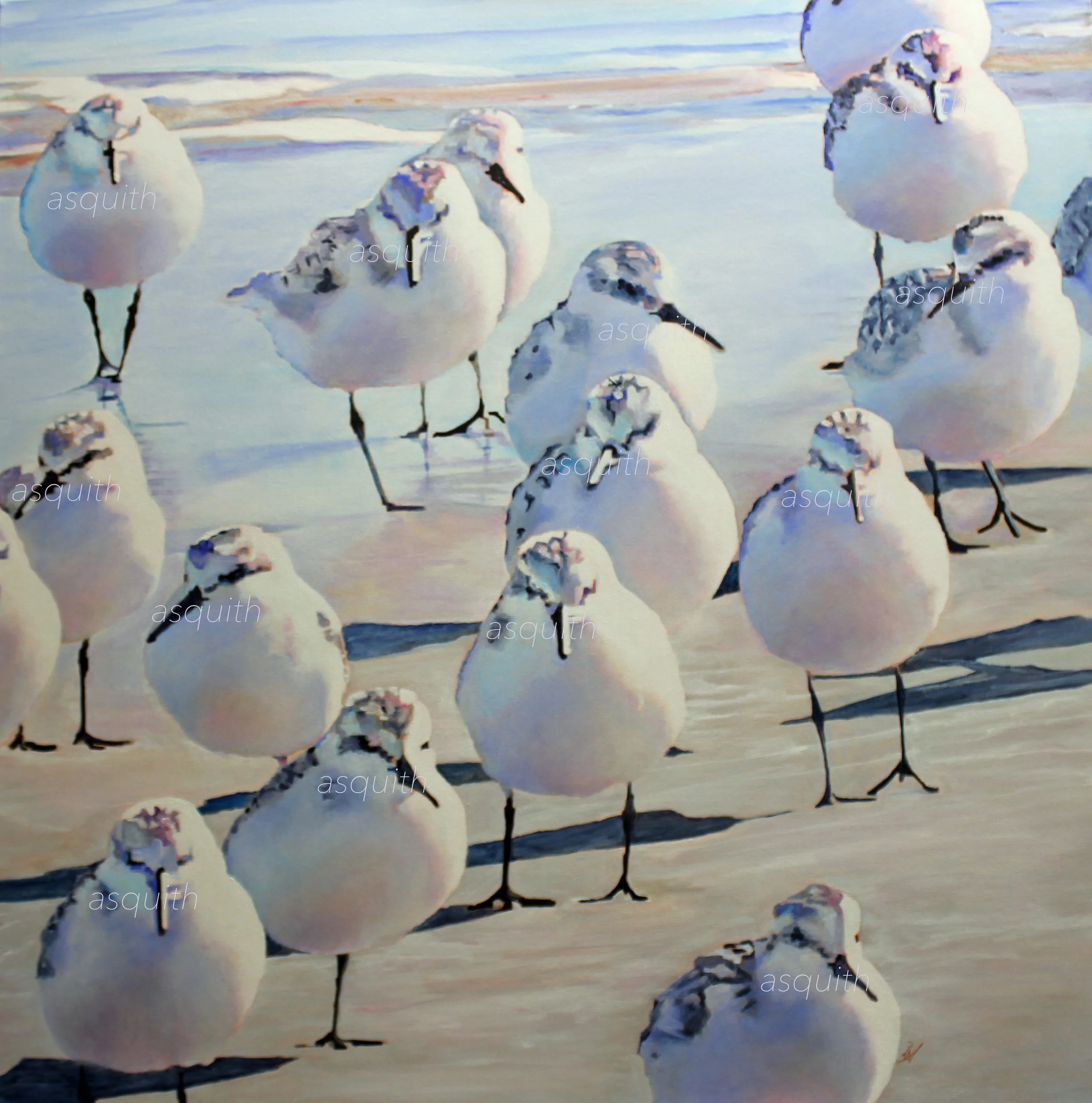 $300.00 - SANDERLINGS IN YORK HARBOR - Original Acrylic 10 x 10” - For Sale at York Art Association - York, Maine - donna.h.asquith@gmail.com